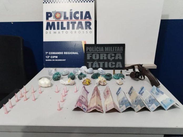 Policiais militares da Força Tática do 7º Comando Regional prenderam um integrante de facção criminosa, de 21 anos, por tráfico de drogas e porte ilegal de arma, na madrugada deste domingo (2.11), em Barra do Bugres. Com o homem, foram apreendidas porções de cocaína, pasta base e maconha, além de munições e uma arma de fogo.