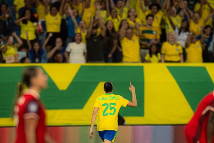 A Seleção Brasileira Feminina se tornou a campeã do FIFA Series 2026 ao vencer as canadenses por 1 a 0 neste sábado (18), na Arena Pantanal, com gol de Aline Gomes já na etapa final. Até a expulsão de Ary Borges no segundo tempo, as Canarinhas dominaram completamente o duelo. A seleção do Canadá até esboçou reação, mas parou nas grandes defesas de Lelê. Com a vitória, a equipe treinada por Arthur Elias encerrou o torneio amistoso invicta e com 12 gols em três jogos.As Canarinhas se impuseram no primeiro tempo, sufocando as adversárias canadenses contra o próprio campo defensivo, sobretudo em situações com Dudinha, Kerolin, Tainá Maranhão e Ludmila, esta última que perdeu a melhor chance da etapa. Ela recebeu belo lançamento, saiu livre de cara pro gol, mas bateu em cima da goleira Sheridan. A Seleção do Canadá conseguiu se manter impactada e segurar a pressão, inclusive quase abrindo o placar com Smith, que parou em duas grandes defesas de Lelê.