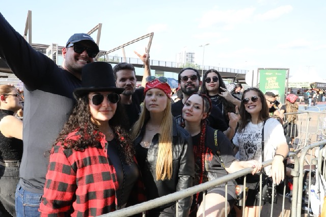 Fernanda Dettman e a filha Pietra, de 16 anos, vieram de Cacoal (RO). “Ela que me convenceu. Quando ouviu que teria o show, falou logo: ‘Mãe, a gente precisa ir!’”, contou Fernanda. Pietra, fã desde criança, cresceu ouvindo as músicas com o pai. “Quando tocar Don’t Cry ou November Rain, eu vou chorar, com certeza”, disse, com brilho nos olhos.